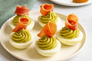 Keto Avocado Deviled Eggs with Crispy Prosciutto
