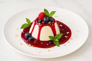 Keto Vanilla Bean Panna Cotta with Berry Coulis & Edible Gold Leaf